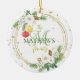 This lovely ornament features a gold wire wreath with two clusters of white berries, petunias, holly and pine branches, pine cones and vintage Victorian ornaments hanging from the top. Personalize the center with your monogram and family name. Gold stars are twinkling all around which adds to the elegance of this Christmas ornament. Perfect for gift giving to a friend or co-worker. Design is the same on the back so it won't matter if it turns around on the tree!