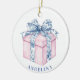 Cet ornement de Noël a un cadeau rose enveloppé d'un arc de Chinoiserie bleu et blanc. Vous pouvez personnaliser avec un nom.