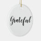 Grateful noir et blanc script calligraphie mignonette grâces ornement en céramique de Noël. Design élégant et moderne. Texte personnalisable