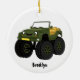 Go on an off road adventure with this military green monster truck. Drawn in fun cartoon style.
