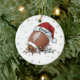 Gridiron Glow: Football with Santa Hat and Holiday Lights Ceramic Ornament