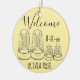 L'ornement présente une illustration originale d'une paire de chaussures et de chaussures pour bébé, avec WELCOME dans une jolie police. Idéal pour un baby shower, baptême ou baptême. Personnalisez simplement vos informations. Cette conception est également disponible sur d'autres produits. Ne vois-tu pas ce que tu cherches ? Vous avez besoin d'aide pour la personnalisation ? Contactez Rebecca pour avoir quelque chose conçu pour vous.