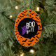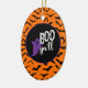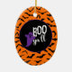 Halloween party ceramic ornament is shown with a cute ghost boo print.