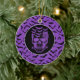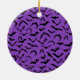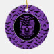 L'ornement en céramique de fête d'Halloween est représenté avec une empreinte crânienne éffrayante sur un arrière - plan de couleur violet chauve-souris. Customisez cet objet ou achetez tel quel. Image sous licence