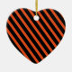 Cet ornement en porcelaine céramique est présenté en forme de coeur avec des rayures d'Halloween de couleurs noir et orange. Customisez cet objet ou achetez tel quel.
