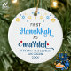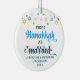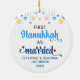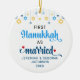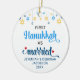 Mignons PREMIER HANOUKKA MARIÉ ornement céramique avec NOMS PERSONNALISABLES & ANNÉE. Le design montre la typographie en écriture manuscrite bleu Hanoukka avec des étoiles suspendues bleues et jaunes. Deux étoiles rouges décorent le mot "marié". Un beau souvenir pour les couples célébrant leur première Hanoukka mariée. Le design est répété sur le dos. Version hébraïque disponible séparément.