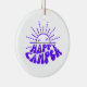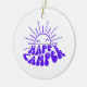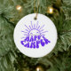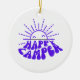 Happy Camper avec un soleil violet sur un ornement en céramique.