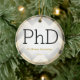 Un ornement pour un doctorat avec un schéma de couleur noir et bronzé, et un motif d'os de hareng dans l'arrière - plan. Il montre le diplôme, le nom et l'année. Customisez simplement cet ornement, ajoutez-le à votre panier et gardez un souvenir de cette réalisation majeure.
