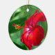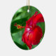 Sur cette image époustouflante, une fleur d'hibiscus rouge est mise en évidence contre un arrière - plan vert marbré.