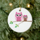 Les hiboux mignons se reposent dans l'ornement en céramique d'arbre de Noël de branche d'arbre.