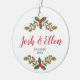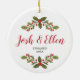 Holly Berries Greenery Personalized Engagement Ceramic Ornament. Personalize with your custom information on both front and back.