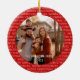 Célébrez les vacances joyeuses en famille avec notre ornement en céramique ronde "Holly Jolly Script Family Photo Red". Ce design est doté d'un cadre motif de script Joyeux Noël avec un texte de calligraphie dynamique "Holly Jolly", à l'arrière, il y a des noms de famille, l'année, et une photo de votre choix. Cet ornement unique apportera une touche d'élégance à vos décorations maison de Noël.
