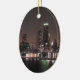 La vue de l'horizon de Chicago avec le bâtiment de John Hancock s'est allumée la nuit de l'extrémité du pilier de marine