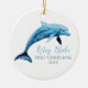 Premier ornement en céramique de Noël pour bébé, fille ou garçon, avec une illustration minime de dauphin. Personnalisé avec le nom du bébé et l'année. Conception recto verso. Idéal gardien pour les fêtes.