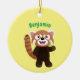 Ce joli panda rouge est en train de déguster une collation en bambou. Dessiné dans un adorable style de dessin animé câlin.
