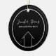 Cet ornement moderne de Noël de réacteur est fait sur mesure avec le nom de votre entreprise immobilière sous le nom de l'agent dans la typographie chic. Ce design minimaliste noir et blanc présente un dessin simple d'une maison. Un cadeau contemporain pour un agent qui travaille pour vous aider à acheter une maison.