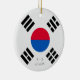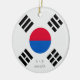 Montrez votre amour pour la Corée du Sud avec un message personnalisé Corée du Sud Drapeau ornement céramique. Cet élégant ornement en céramique de haute qualité présente l'emblématique Taeguk bleu et rouge (Yin-Yang) au centre du drapeau sud-coréen, entouré de trigrammes noirs distinctifs. Que vous fêtiez une occasion spéciale, que vous fassiez la commémoration du patrimoine coréen ou que vous cherchiez un cadeau unique, cet ornement peut être personnalisé avec un message personnalisé pour le rendre encore plus spécial. C'est un complément parfait à votre décor de vacances ou un cadeau mémorable pour quiconque tient la Corée du Sud à proximité de son coeur.