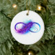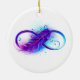 Infinity symbole with a beautiful feather painted in purple and blue bright colors on white background