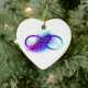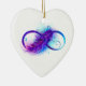 Infinity symbole with a beautiful feather painted in purple and blue bright colors on white background