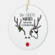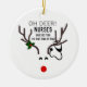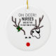 Infirmière Funny Noël Stethoscope Reindeer Céramique Ornement fait une excellente idée de cadeau amusant pour une infirmière. Les deux côtés de l'ornement sont conçus avec un visage de rennes de nez rouge mignon et un stéthoscope enchevêtré dans ses grands bois. La phrase drôle est "Oh, les infirmières de cerfs n'ont aucune peur C'est cette période de l'année."