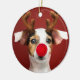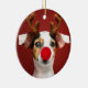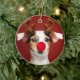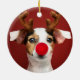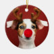 Un mignon chiot Jack Russell portant des bois de rennes et un nez rouge est prêt à faire des baisers de chiots pour Noël !