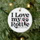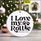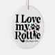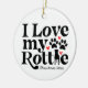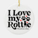 Cet ornement mignon "J'aime mon Rottie" est un excellent cadeau pour toute maman ou papa de chien Rottweiler. Il est personnalisable avec le(s) nom(s) de votre chien. Cette option recto-verso comporte un modèle de photo au verso pour une photo personnalisée.