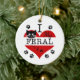 Cute I Lote my Feral Cat double face céramique ornement de chat! Même conception de part et d'autre. Le design présente un coeur rouge avec un visage de chat noir mignon et des empreintes de pattes! Un grand cadeau pour un amoureux des animaux.