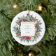 Ce magnifique ornement présente une belle cheminée de vacances à l'aquarelle avec feuilles et branches de pin vert, baies de Noël rouges, cônes de pin, fleurs rouges et crème. Un cadre carré avec une fausse bordure d'or est au centre, et vous pouvez personnaliser avec le nom de votre bébé et tout message ou année en utilisant le modèle.