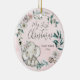 Cet éléphant aquarelle fleurie fille mon premier ornement céramique de Noël fait un gardien merveilleux. Cette ornementation branchée de 1er Noël présente une jolie illustration d'éléphant, des fleurs roses et blanches, une police de caractères de script de calligraphie moderne sur un arrière - plan d'aquarelle rose. Ajoutez votre photo de bébé à l'arrière. L'ÉCHANTILLON DE PHOTO DE BÉBÉ N'EST PAS INCLUS. REMPLACEZ PAR VOTRE PROPRE PHOTO AVANT DE COMMANDER.