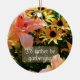 Ce joli ornement a une photographie de fond d'un jardin rempli de nénuphars couleur pêche avec un centre rose profond et des confleurs jaune vif avec un centre brun foncé. Sur le devant, on peut lire "Je préfère être jardinant" Au fond, une citation de Ralph Waldo Emerson, que vous pouvez supprimer ou modifier si vous le souhaitez. La citation est "La terre rit de fleurs."