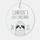 Commémorez le premier Noël du bébé avec ce joli ornement de gardien, avec un simple dessin moderne en noir et blanc d'un parfum. Personnalisez-le avec le nom du bébé et l'année dans la police d'impression dessinée à la main.