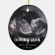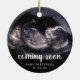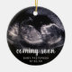 Vous attendez un bébé et vous voulez une façon créative de l'annoncer? Révélez votre grossesse à votre famille et à vos amis proches avec ce joli ornement aux ultrasons. Ce design moderne comprend votre échographie et un texte superposé avec les mots "bientôt", le nom du bébé et la date d'échéance. Ajoutez la même photo de chaque côté ou une autre de chaque côté. Ce ornement est une excellente façon de surprendre votre famille et vos amis proches avec votre faire-part de grossesse ce Noël.