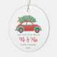 Voiture rouge mignonne Arbre de Noël Premier ornement en céramique de Noël pour couple marié