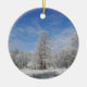 Deux images différentes représentant le matin après une légère neige. Des arbres couverts de neige et un ciel bleu vif créent une scène magique.