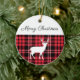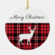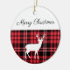 Merry Christmas Rustic Red Plaid White Tag Ceramic Ornament
