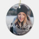 Un décor de vacances simple et élégant présente une photo de chaque côté avec "joyeux" recouvert de lettres blanches. Personnalisé avec l'année en dessous.
