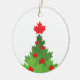 Cet ornement en céramique présente un arbre de Noël assemblé à partir du symbole canadien - les feuilles d'érable. Le design se fait dans les couleurs traditionnelles de Noël : vert et rouge. Le dos de l'ornement a "Joyeux Noël canadien!" en rouge.