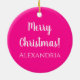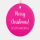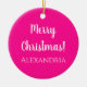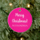 Restez simple avec cet ornement personnalisé et festif d'arbre de Noël, dans le tendance rose chaud. Il a le message, "Joyeux Noël" dans un script de typographie blanc stylisé. Ou changez-le en personnalisant facilement le design en ajoutant votre propre texte. Changez la couleur en une étape de plus en utilisant l'outil d'édition de design! Il fait un cadeau de Noël personnalisé parfait ou fête de Noël en faveur ou idéal comme un nouvel ajout à vos décorations d'arbres de Noël et décoration de maison festive cette saison de vacances! Joyeux Noël! Si vous avez besoin d'aide pour la personnalisation, la mise en correspondance de produits ou pour un e-mail de conception personnalisée : ursuladawnmoon@gmail.com