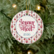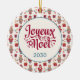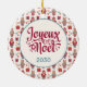 Cette fabuleuse crème d'art populaire de Noël ronde ornement en céramique avec un motif de santas, rennes, étoiles et cadeaux qui dit Joyeux Noël en français "Joyeux Noel" et a l'année aurait l'air génial sur votre sapin de Noël. C'est tellement festif et va avec n'importe quel décor de Noël, c'est rustique mais rétro et moderne mais traditionnel ! Obtenez certains comme cadeaux pour les proches...ils vont adorer !