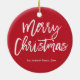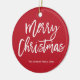 Joyeux Noël simple ornement d'arbre rouge et blanc avec texte changeant - vous pouvez changer le nom de famille et l'année.