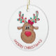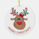 Ce design de vacances présente une jolie bande dessinée d'un renne avec le texte éditable "Joyeux Noël" dans la typographie rouge moderne ci-dessous. #noël #fêtes #saisonnières #festin #merry #merrychristmas #personalized #addyourown #editable #reindeer #animal #girl #girly #chic #modern #tendance #tendance #stylish #élégance #ornament #christmasdéco #décoration de maison #bureau #travail #école #cadeaux