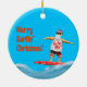 Décoration En Céramique Joyeux Surfin' Christmas Père Noël sur Surfboard T