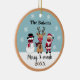 Cet ornement de Noël drôle et mignon a un bonhomme de neige, un renne et le Père Noël portant des masques. Les couleurs sont jolies, rouge, blanc, noir et bronzé. Le dos a une jolie couleur bronzée avec des flocons de neige. Vous pouvez customiser ceci avec un nom et une année.