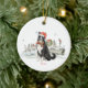 Celebrate the bold spirit of the Karelian Bear Dog with this charming illustrated holiday design. A striking black and white Karelian Bear Dog sits proudly in a peaceful winter woodland scene, wearing a festive Santa hat and plaid bow in a soft storybook watercolor style.