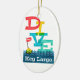 Colorful Key Largo Florida scuba design. Retro typographiy in inkpress style with the word "dive", along with a scuba flag floating in the ocean.