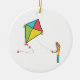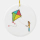 Un cerf-volant vole par une journée venteuse. Un cerf-volant avec queue de ruban vole haut dans l'air et en bas sur le sol est un prospectus de cerf-volant. La joie de voler un cerf-volant dans une simple illustration.