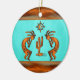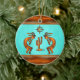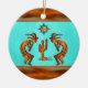 Personnalisez cet ornement de Noël "One of a Kind" au sud-ouest de Kokopelli! Deux Kokopelli du sud-ouest en cuivre et en noir Jouer la Flûte et danser autour d'un cactus....Sous le soleil sur un Arrière - plan turquoise ! Design D'Art Original Par L'Artiste Kerry Miller.