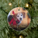 Cet ornement de Noël de photo d'amusement comporte le manuscrit "Joyeux Noël" et votre propre nom et leur propre photo d'or d'animal familier comme arrière - plan. Facile à personnaliser avec la photo spéciale, le nom et l'année de votre animal familier. De retour de l'ornement comporte l'année sur la même photo.