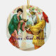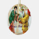 peinture vintage d'aquarelle du conte de fées la "lampe des aladdin" avec un homme de porcelaine utilisant un casquette rouge, une longue tresse mince de cheveux, une moustache, un manteau jaune, et des pantalons oranges, jugeant un panier plein des lampes et tenant une lampe jusqu'à l'échange elle avec une autre vieille lampe tenue et offerte par une dame avec la coiffure japonaise antique, manteau vert, et rose a décoré la robe, faisant un pas hors d'un palais avec les colonnes blanches et le dessus rouge bouclé de toit, dans un joli jardin avec un bel arbre avec les fleurs roses et rouges. art vintage dans les roses et les jaunes.
