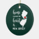 La maison du New Jersey est là où se trouve le coeur - en caractères mixtes et en majuscules blancs avec la silhouette de l'état et un coeur rouge.